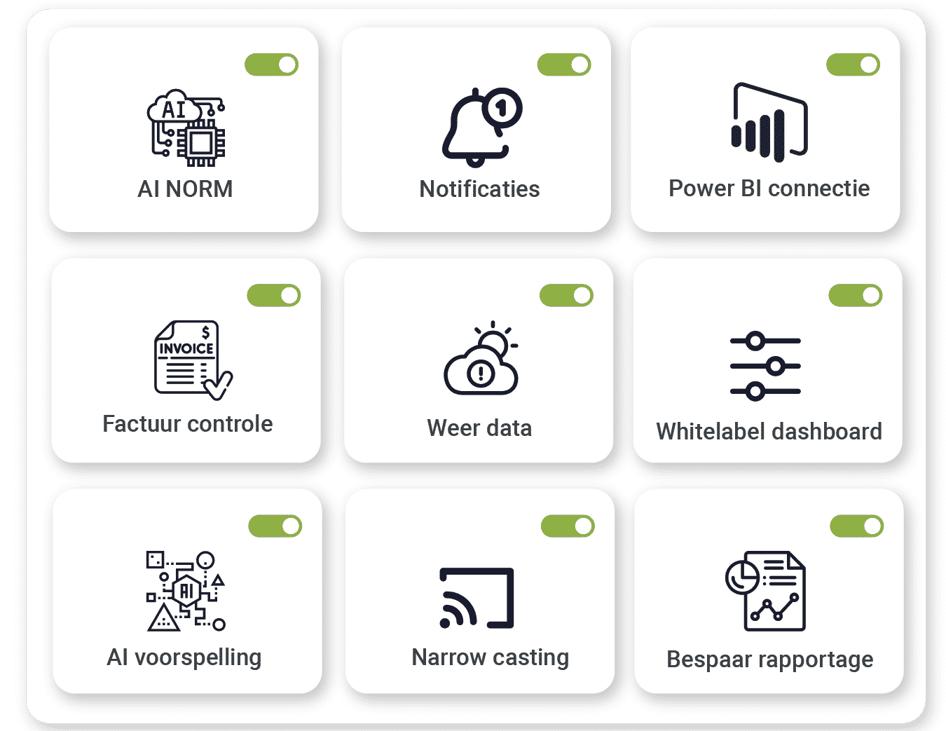Jij kiest wat je wilt hebben. Extra notificaties, geavanceerder energie inzicht of rapportages? Kies zelf welke mogelijkheden bij jou passen